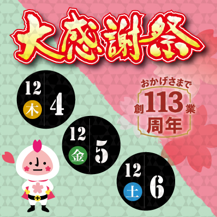日頃の感謝を込めまして、3日間の感謝祭を開催いたします。